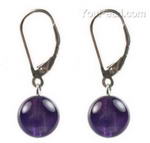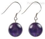 Amethyst quartz gemstone drop earrings on sale, 10mm round