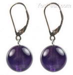 Amethyst quartz gemstone leverback earrings online buy, 12mm round