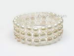 Triple row stretchy freshwater white pearl bracelet wholesale, 6-7mm