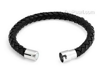 Black braided unisex round leather cord bracelet wholesale, 8mm