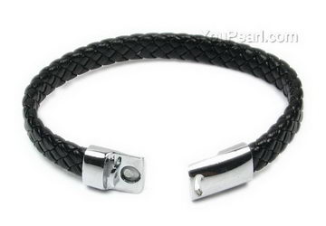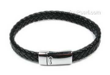 Black unisex braided flat leather cord bracelet discounted sale, 10mm