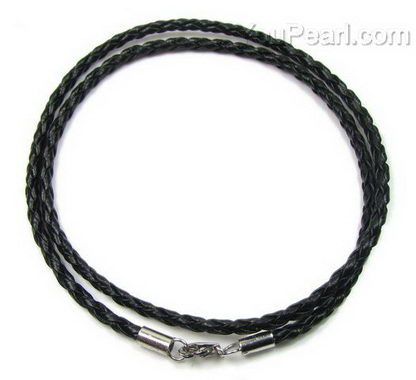 Black braided leather cord necklace wholesale, 925 silver clasp, 3.0mm
