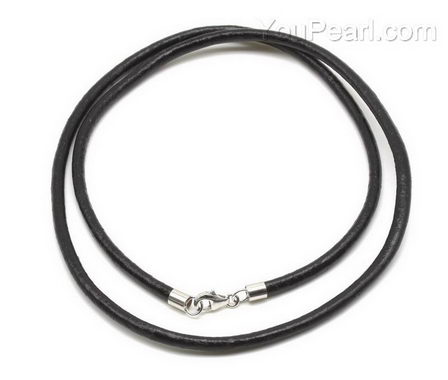 Black leather cord necklace wholesale, 925 silver clasp, 3.0mm