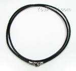 Black leather cord necklace of sterling silver clasp wholesale, 2.0mm