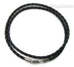 Black braided leather cord necklace wholesale, 925 silver clasp, 3.0mm