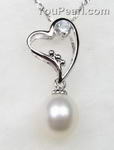 White freshwater pearl heart pendant discount sale, 925 silver, 7-8mm