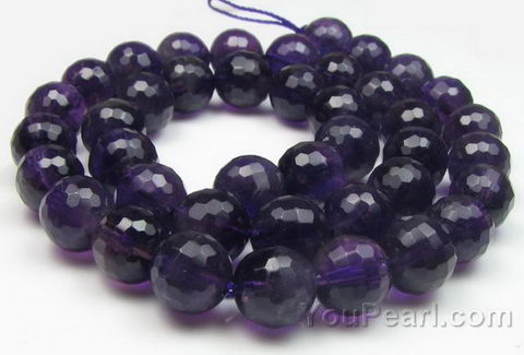 Amethyst quartz, 10mm round faceted, natural gem bead strand bulk sale