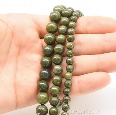 The listed price is for one gemstone strand. The advertised photos show different size green gold stone beads.