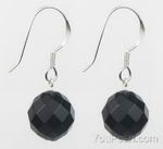 Black onyx natural gem earrings for sale, 10mm round faceted