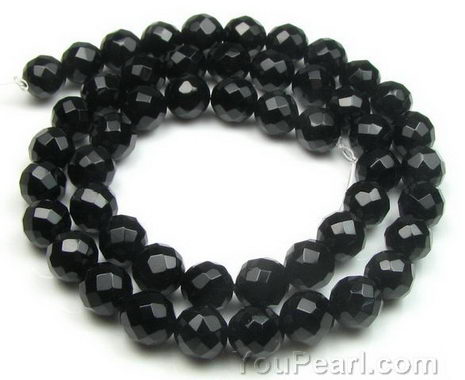 Black onyx, 8mm round faceted, natural gemstone beads wholesale