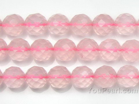 Rose quartz, 10mm round faceted, natural gem bead strand craft supplies