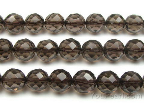 Smoky quartz, 10mm round faceted, natural gem bead strand bulk sale