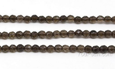 Smoky quartz, 4mm round faceted, natural gemstone beads wholesale