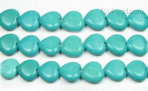 Turquoise, 15x16mm heart, natural gem bead strand craft supplies sale