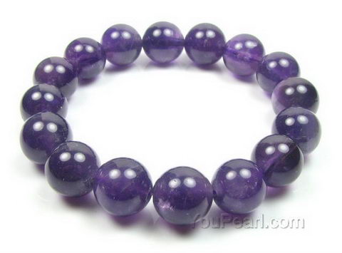 Amethyst stretchy natural gem bracelet for sale, 12mm round