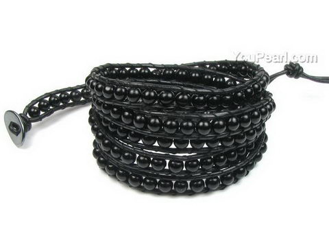 Black onyx gemstone bead long leather wrap bracelet on sale, 36 inches