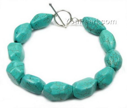 Nugget turquoise gemstone bracelet discount sale, 925 silver clasp