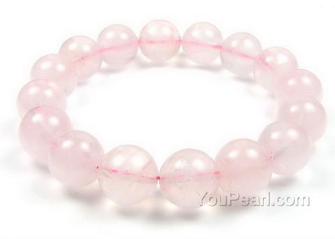 Rose quartz stretchy gem bracelet factory direct sale, 12mm round