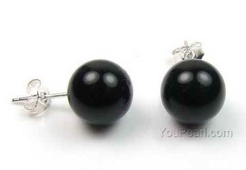 8mm black round shell pearl stud earrings on sale, sterling silver