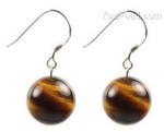 Tiger's eye leverback gemstone beaded earrings whole sale, 8mm round