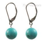 Turquoise lever back drop earrings manufacturer direct sale, 8mm round