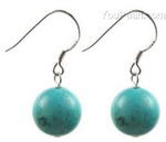 Turquoise gemstone drop earrings wholesale, 12mm round