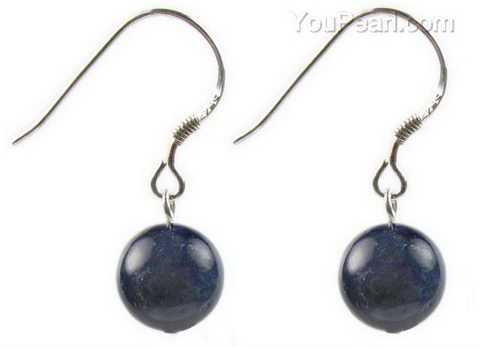 Lapis lazuli gemstone drop earrings for sale, 8mm round