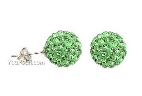 Peridot color crystal ball silver stud earrings whole sale, 10mm round