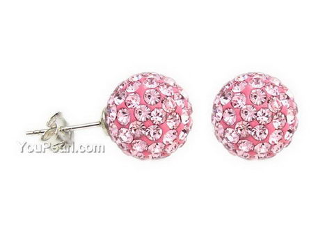 Sterling pink crystal ball earring studs direct buy, 10mm round