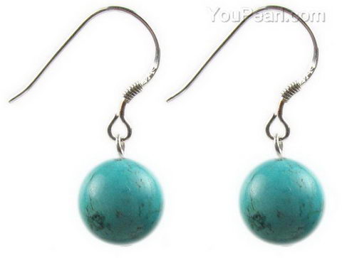 Turquoise gemstone beaded earrings whole sale, 10mm round