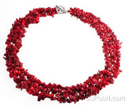 Red coral gem beaded multi-strand necklace wholesale online