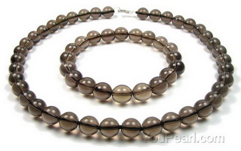 This necklace is knotted between each bead, while the bracelet is stretchy, and it fits most wrists.