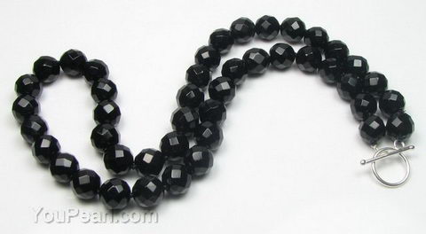 Black onyx natural gem necklace for sale, 10mm round faceted