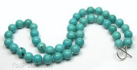Turquoise natural gemstone beaded necklace wholesale, 10mm round