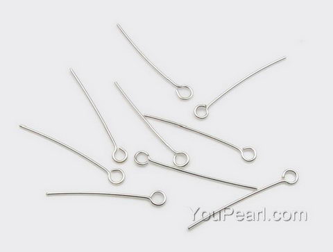 Eye pin, 20mm, 925 silver jewelry findings wholesale, sold per pkg of 10