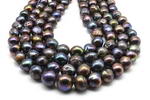 10-13mm peacock black freshwater off round kasumi pearl, nucleated baroque pearls on sale