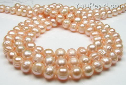 9-10mm pink fresh water baroque pearl strands buy bulk
