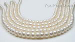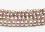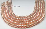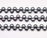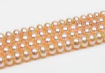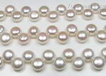 Button pearls, also called rondelle pearls or side-drilled pearls, have flat sides and are flatter than potato pearls.