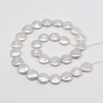13-14mm white coin fresh water pearl strands online wholesale, AA