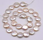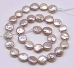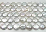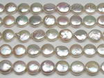 14-15mm coin pearl, white freshwater cultured pearl strand on sale, A+