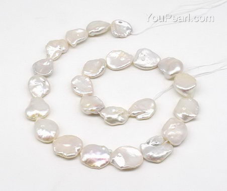 13-14mm white coin fresh water pearl strands online wholesale, AA