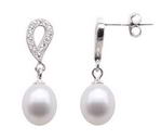 Freshwater pearl white drop bridal earrings on sale, sterling silver, 7-8mm