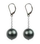12mm peacock black round shell pearl eurowire earrings, 925 silver