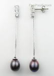 7-8mm black fresh water pearl drop earrings for sale, sterling silver