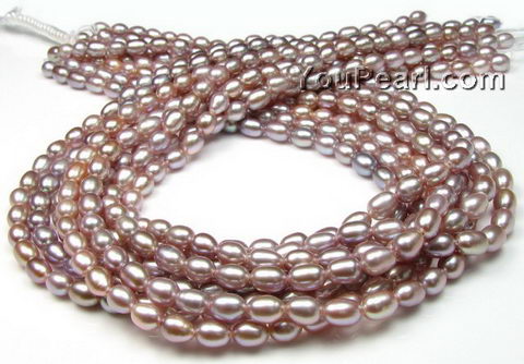 5-6mm lavender rice shape cultured freshwater pearl strands wholesale