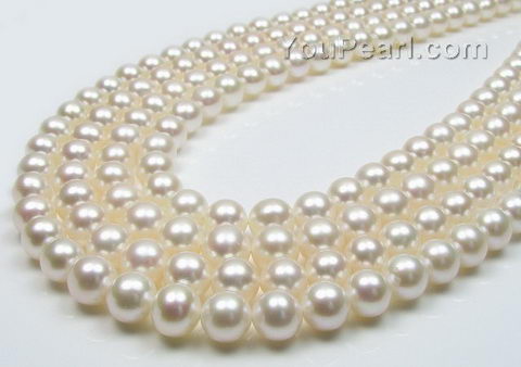 7.5-8.5mm white round cultured freshwater pearl strands wholesale, AA+