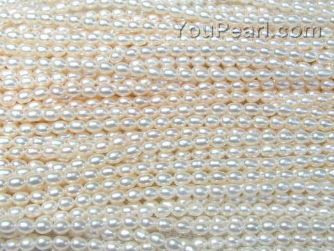 3.5-4mm white rice shape fresh water pearl strands wholesale, AA