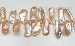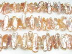Biwa pearls, also called stick pearls are long, flat and narrow.