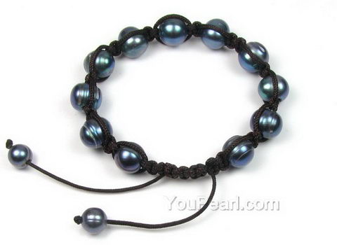 Peacock black freshwater pearl shamballa bracelet on sale, 10mm