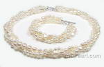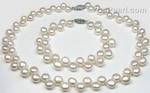6.5-7mm white button top drilled pearl necklace & bracelet set sale